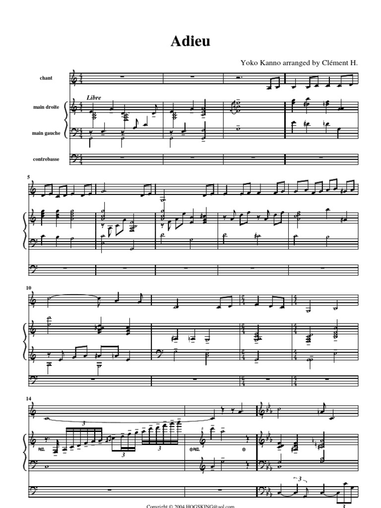 Sheet Music Piano Yoko Kanno Piano Bar From Cowboy Bebop Entertainment